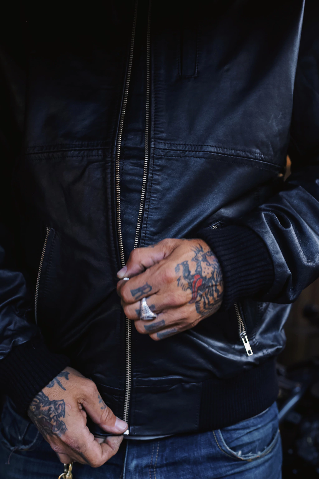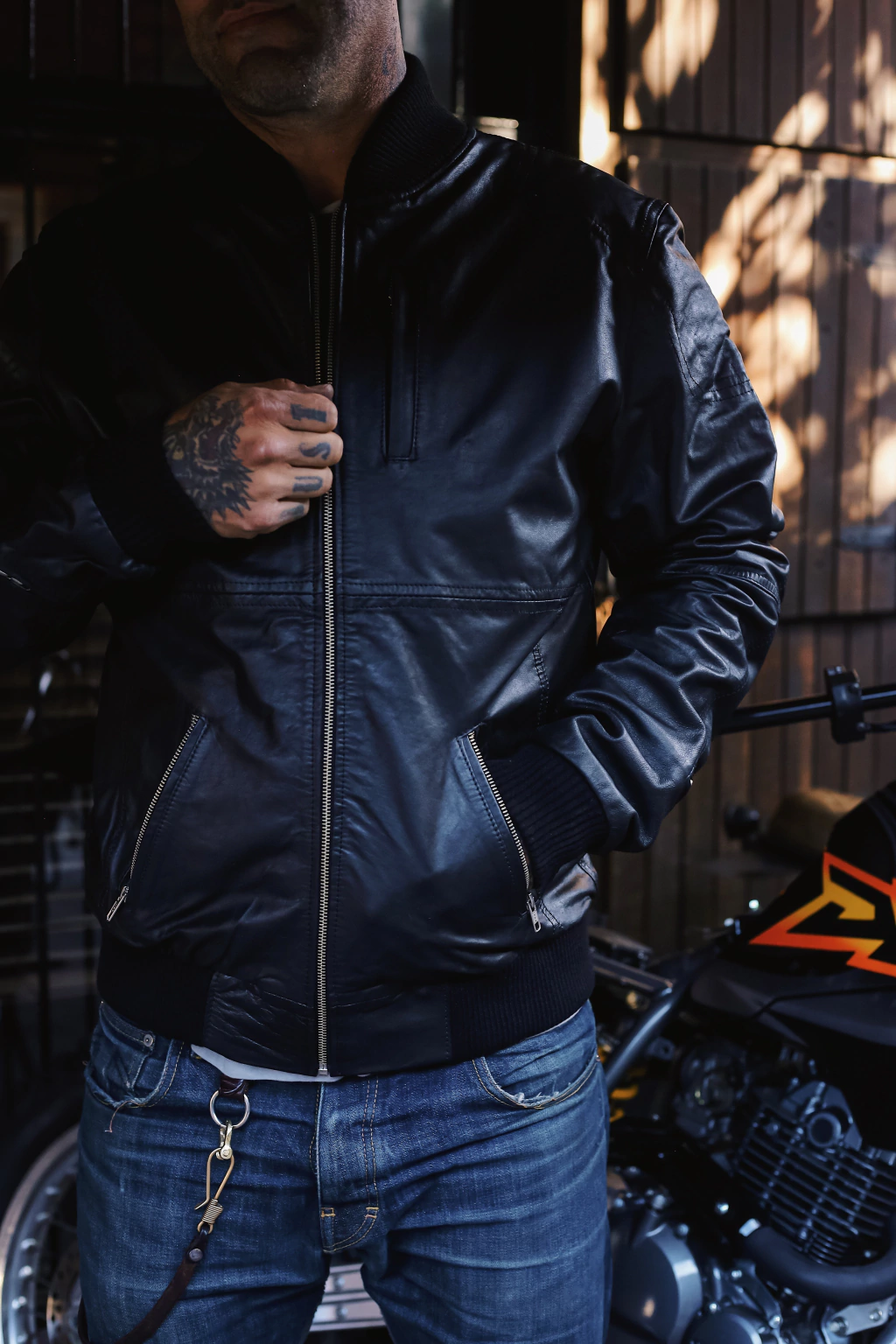 CAMPERA DE CUERO TIPO BOMBER.